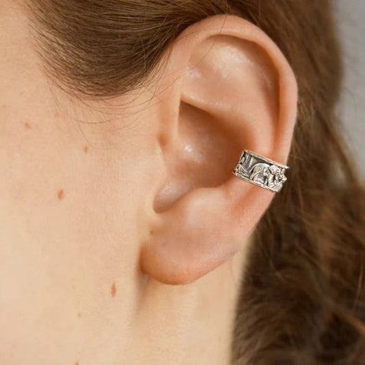 925 Sterling Silver Elephant Ear Cuff Earrings