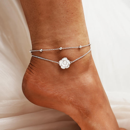 925 Sterling Silver Daisy Layered Anklet Bracelet Sexy Beach Ankle Bracelet for Women