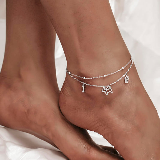 925 Sterling Silver Dog Ankle Bracelets for Women