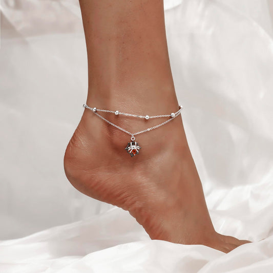 925 Sterling Silver Double Layer Ankle Bracelet Lightweight Adjustable Spider Foot Chain for Women