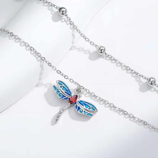 925 Sterling Silver Layered Anklet Bracelet Adjustable Dragonfly Summer Foot Chain Jewelry for Women