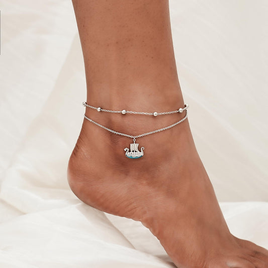 Viking Boat Anklet 925 Sterling Silver Viking Long Ankle Bracelets
