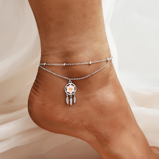 925 Sterling Silver Dream Catcher Anklets Dainty Layered Boho Anklets Bracelet