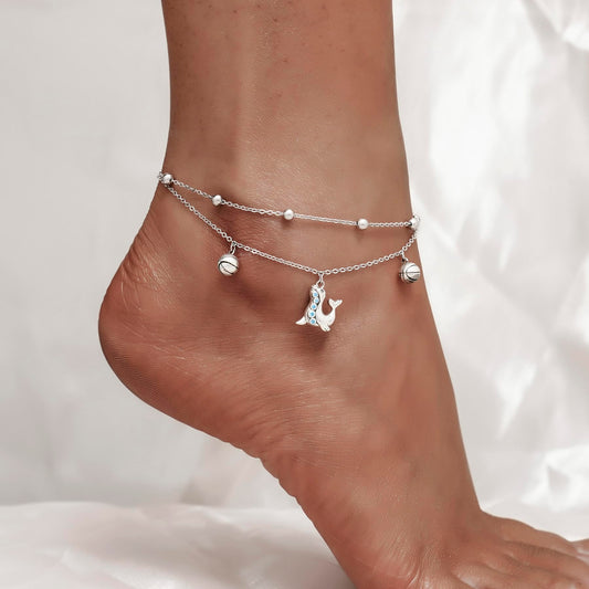 Dolphin Anklets 925 Sterling Silver Dainty Layered Ankle Bracelet for Women