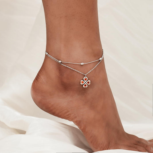 Four-Leaf Clover Ankle 925 Sterling Silver Ankle Bracelets for Women