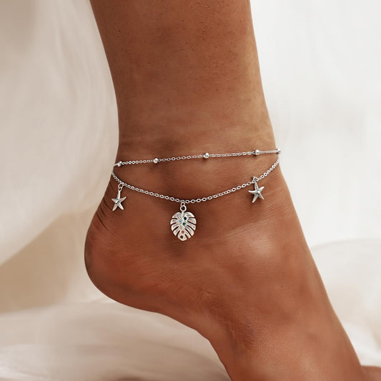 Ankle Bracelet 925 Sterling Silver Boho Double Layer Anklets
