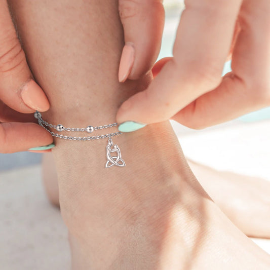 925 Sterling Silver Celtic Knot Triangle Anklets Irish Family Trinity Knot Layered Anklets