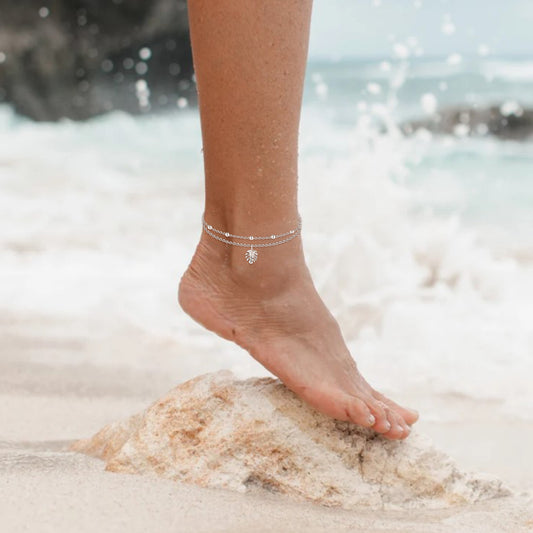 Ankle Bracelet 925 Sterling Silver Sun Anklet Boho Palm Anklets for Women
