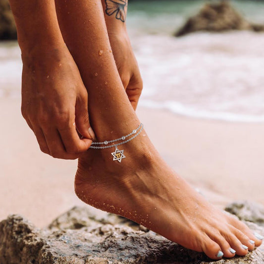 925 Sterling Silver Star of David Chai Anklets Dainty Layered Judaism Star of David Anklet