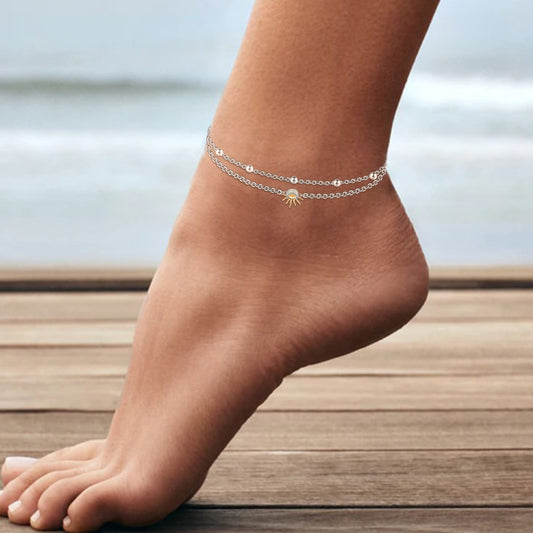 925 Sterling Silver Ankle Bracelet for Women Dainty Layered Anklet Bracelet