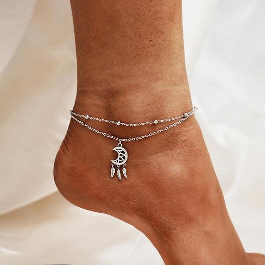 925 Sterling Silver Dream Catcher Anklets Dainty Moon Layered Anklet Bracelets