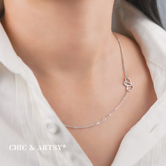 925 Sterling Silver Sideways Heart Necklace Sideways Double Heart Charm Necklace
