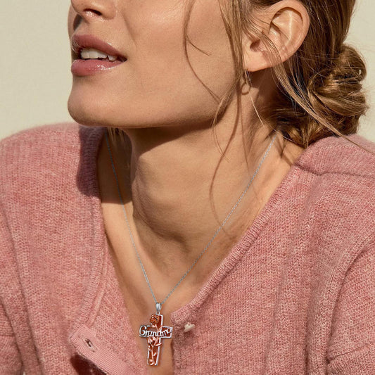925 Sterling Silver Grandmother Necklace Nana Cross Pendant Necklace