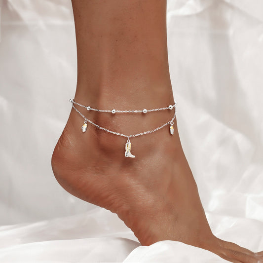 Western Cowboy Anklets 925 Sterling Silver Boots & Cactus Charm Anklet Bracelet