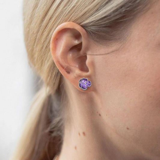 925 Sterling Silver Violet Earrings Purple Hypoallergenic Violet Flower Stud Earrings