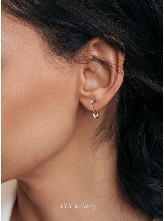 925 Sterling Silver Safety Pin Earrings for Women