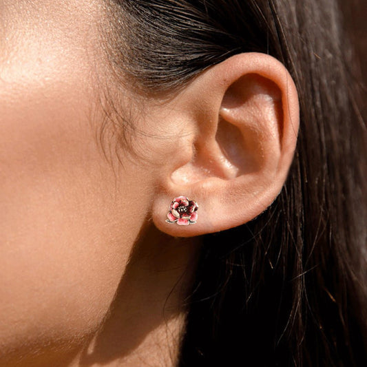925 Sterling Silver Poppy Flower Earrings Fashion Hypoallergenic